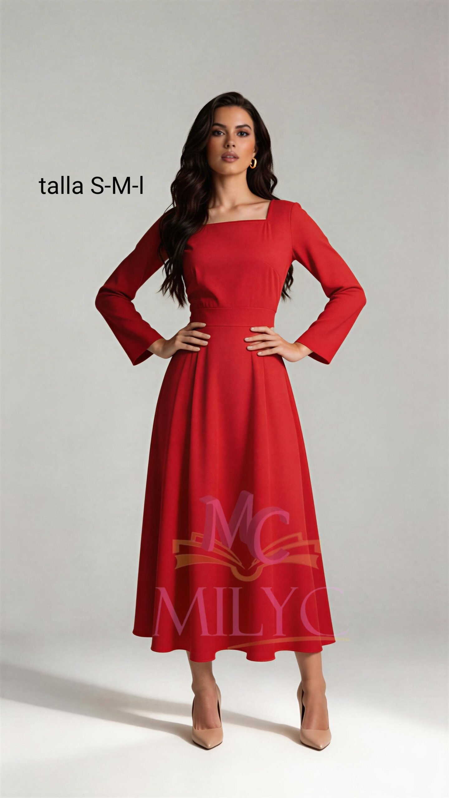 modest dress made of silk fabric Red
